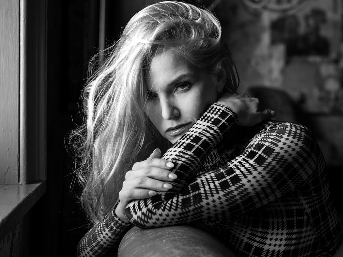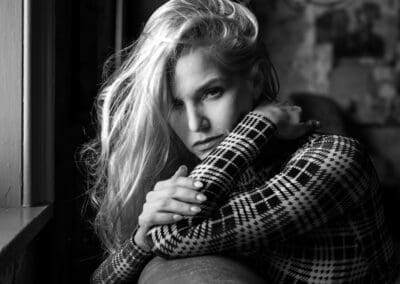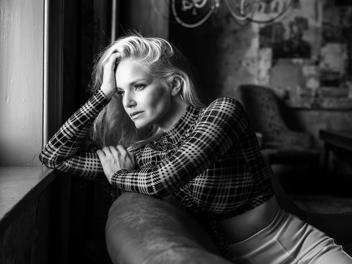 For this shot of model Liz Ashley, I wanted to create soft background separation and keep the focus on Liz’s expression.