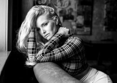 This black-and-white series beautifully highlights the elegance and depth of Liz Ashley, a Houston-based model with roots in Louisiana’s French Cajun culture. Standing at 5’3” with striking blonde hair and green eyes, Liz brings over a decade of dedication to her craft, blending beauty with authenticity. Shot at the MAB Frederick Studio in Middletown, Maryland, these images showcase her passion for creating fantasy through her work. Liz is more than just a model; she’s a full-time artist, channeling her creativity into reading, writing, and painting when she’s not traveling across the Southwest. Proud to follow in the footsteps of icons like Marilyn Monroe, Liz embraces her independence and seeks a partner who’s confident alongside a strong woman. This series is a testament to her artistry and the idea that, indeed, “the best is yet to come.”